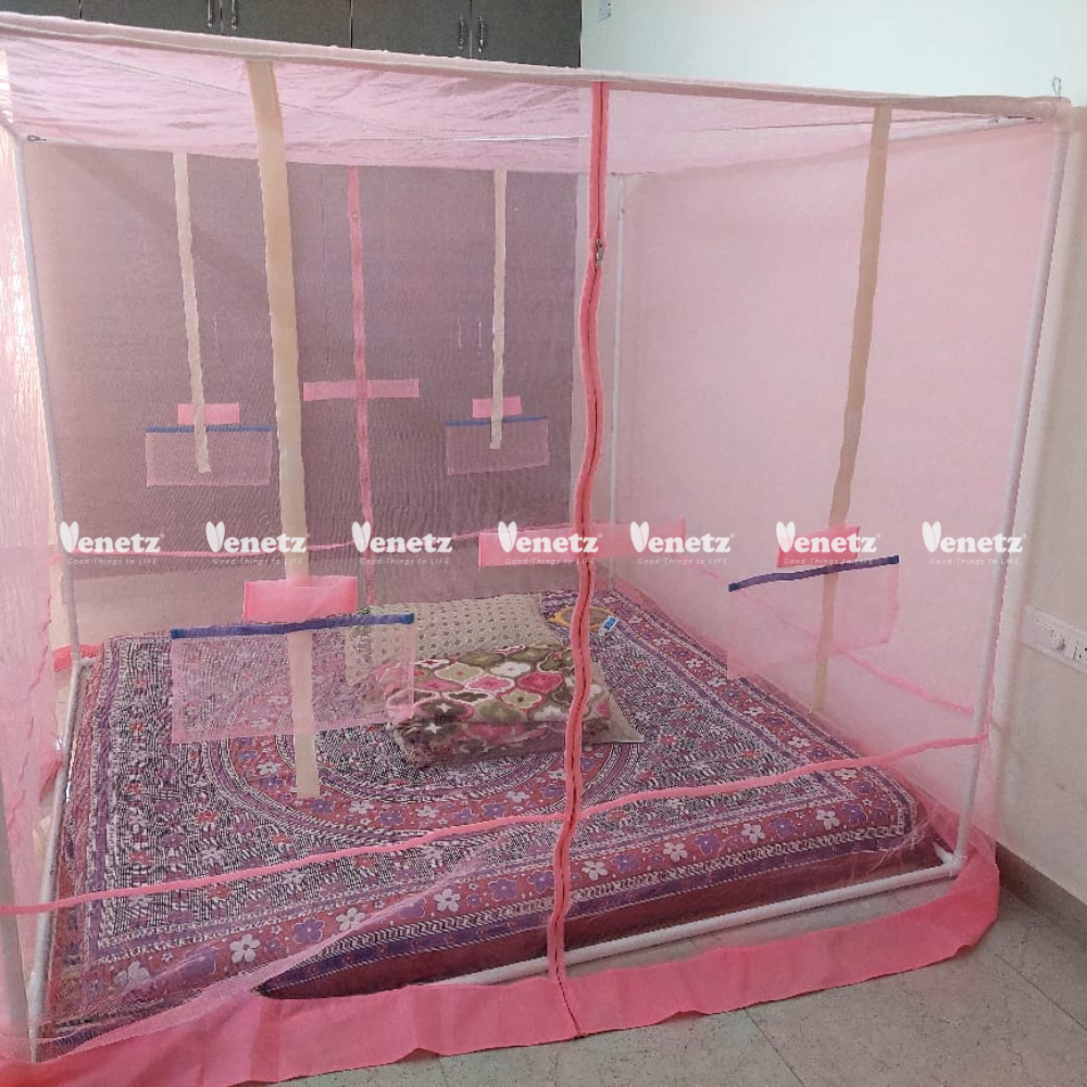 The frames are very sturdy and the fitting of the net is very nice....... Seems to be a easy installation for us... The instructions are very clear..... Atlast we found a very good solution for a long time problem to avoid mosquito bite at night.... Very Nice Product.....The only problem I see is they take 4-5 working days for delivery....Good Product, finally got the solution for searching AC and fan remote at midnight.thank u venetz! Must buy one.