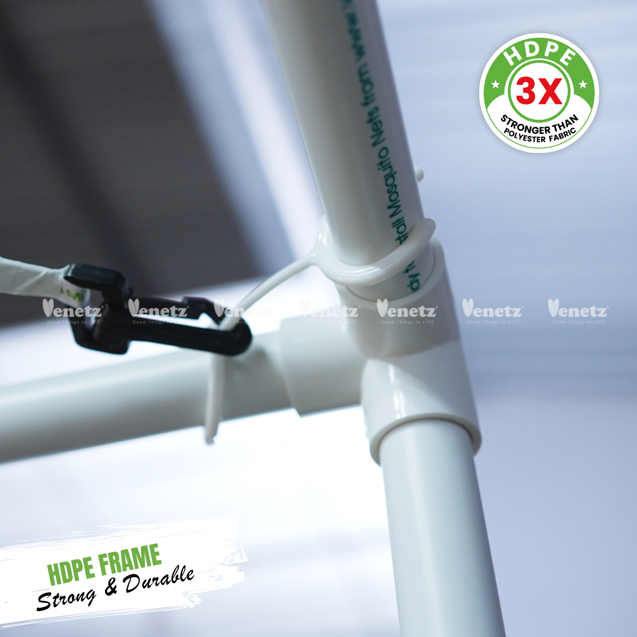 Venetz Framed Mosquito Nets offer a durable and elegant solution for long-lasting mosquito protection. Engineered from strong HDPE material, they’re lightweight, yet highly durable, portable, and machine washable, making them ideal for everyday home use. With a quick 3-minute installation and tool-free setup, they combine convenience with reliability. The stable framed structure fits securely on any cot or bed size, ensuring complete coverage and comfort. Enjoy peaceful, mosquito-free nights with protection built to last, only with Venetz.